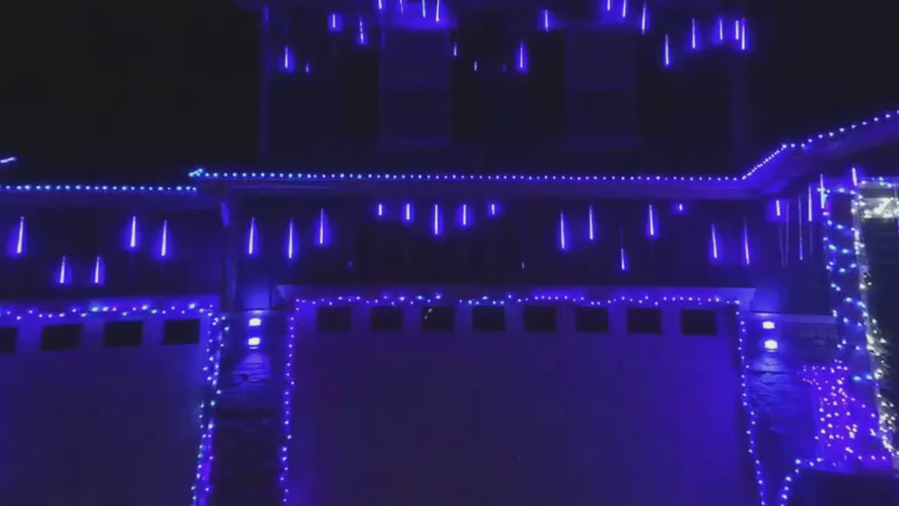 Verwandeln Sie Ihren Außenbereich mit unseren Halloween- und Weihnachts-Meteorlichtern in ein Lichtermeer . Ob für einen zauberhaften Schneefall-Effekt zu Weihnachten oder mystische Beleuchtung zu Halloween – diese LED-Lichterketten schaffen eine magische Atmosphäre in Ihrem Garten, auf Ihrer Terrasse oder bei Ihren Partys. Die tropfenförmigen LEDs erzeugen einen fließenden Lichteffekt, der einem funkelnden Meteoritenschauer ähnelt.